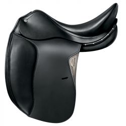 Dieser Dressursattel verwendet die IGS-Technologie (Integrate Gel System). Es hat einen beweglichen vorderen Knieblock, der mit einem Klettverschluss befestigt ist.