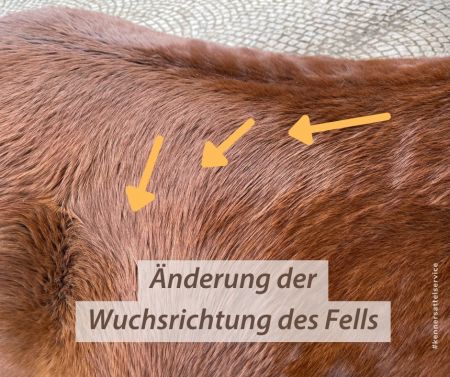 Zunächst einmal: keine Panik. Solange nur das Fell betroffen ist, heißt das nicht automatisch, dass der Sattel nicht mehr passt. Der Grund liegt in der Wuchsrichtung der Haare, die sich im Lendenwirbelbereich ändert. Gegen Ende des Winters wird das lange und feine Haar zudem oft spröde und bricht daher leichter. Außerdem ist die Bewegung des Rückens unter dem diagonal schwingenden Sattel im Lendenbereich besonders stark, was den Abrieb fördert.